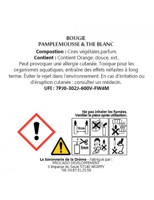Le Pamplemousse apporte la fraîcheur et l'acidité de la fragrance. Et le Thé Blanc apporte sa touche délicate et apaisante au parfum. Laissez-vous séduire par ces notes grâce à cette Bougie Parfumée Pamplemousse et Thé Blanc.